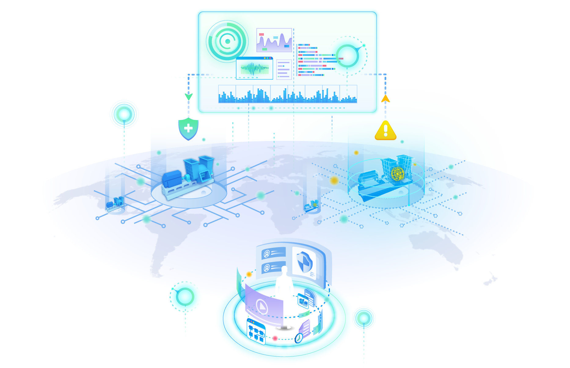 iPHM設(shè)備健康智能運維系統(tǒng)通過傳感器將設(shè)備運行、振動、環(huán)境等相關(guān)數(shù)據(jù)采集至工業(yè)大數(shù)據(jù)平臺,依托智能分析算法,為客戶提供設(shè)備的狀態(tài)監(jiān)測、故障診斷與分析,設(shè)備能效分析、全生命周期管理等,服務(wù)于企業(yè)管理者、設(shè)備管理人員、診斷工程師以及運維保養(yǎng)人員。